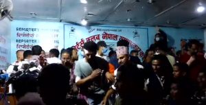 रिपोर्टर्सक्लबमा सञ्चारकर्मीहरूलाई हप्कीदप्की गरेपछि उनीमाथि हातपात र धकेलाधकेल भएको हो।